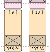 タイムライン中に下のようなバツ印が表示された場合、これはその箇所でハートの繰り越しあふれが発生していることを表しています。なるべくこの表示が出ないような構成になると理想的です。